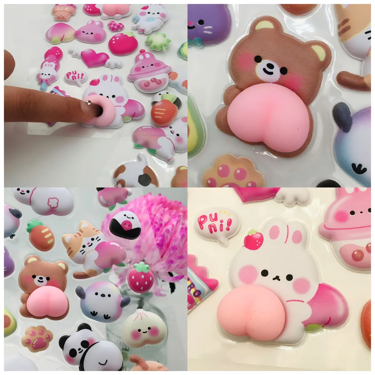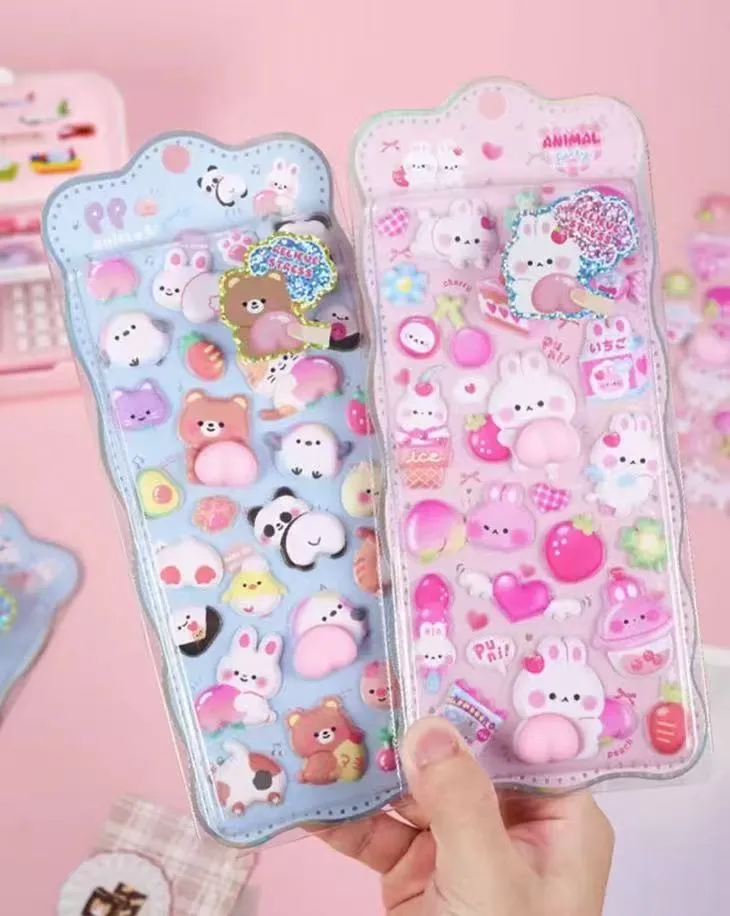 3D dizainas: Skirtingai nuo plokščių lipdukų, jie turi iškilią, pūstą tekstūrą, kuri sukuria žaismingą, erdvų paviršių vaizdą.