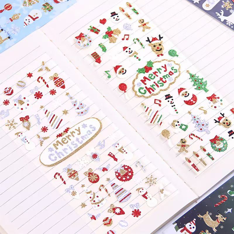 JoJo pakuotėKalėdinių blizgučių lipdukai yra dekoratyvinės lipnios etiketės, specialiai sukurtos kalėdiniam sezonui. Pagrindinė jų bruožas yra prie paviršiaus pritvirtintas blizgių blizgučių sluoksnis, kuris šviesiai sukuria ryškų ir putojantį efektą. Šie lipdukai dažnai pasižymi klasikiniais atostogų dizainais, tokiais kaip snaigės, eglutės, žvaigždės ir šiaurės elniai. Dėl ryškių spalvų ir šventinio stiliaus jie puikiai tinka pridėti linksmą prisilietimą prie jūsų dekoracijų.