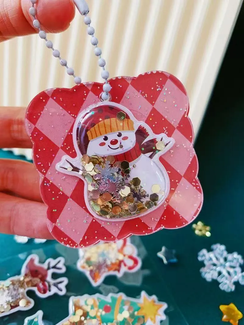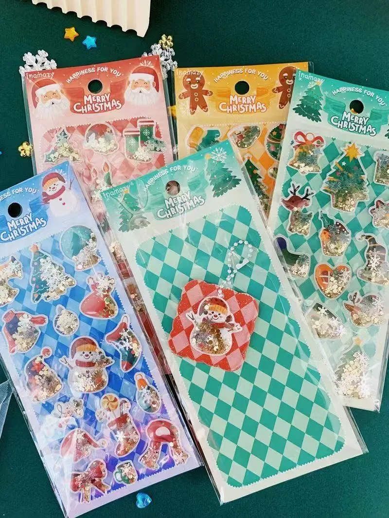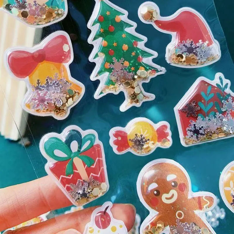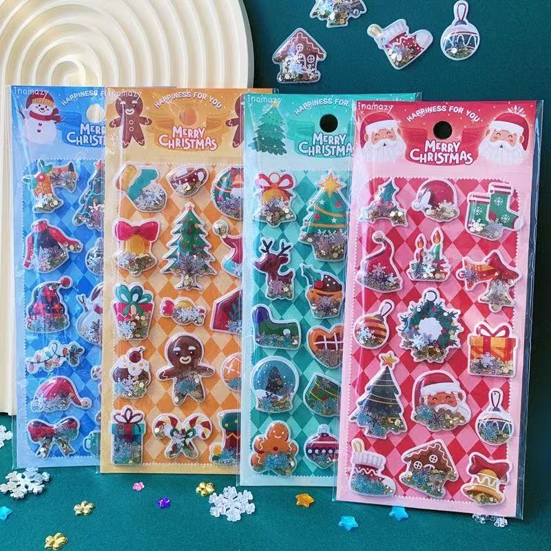 Įprastos kalėdinių purtyklės lipdukų medžiagos yra tradicinis popierius, patvarus PVC.