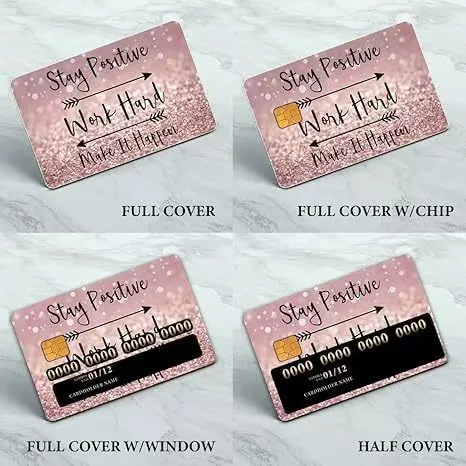 Kredito kortelių lipdukaiyra įvairių stilių, įskaitant visą dangtelį, pusę dangtelio, dangtelį su langeliu kortelės numeriui arba lustui ir dangtelį su iš anksto išpjauta mikroschemos vieta. Dydis paprastai yra skirtas standartinio dydžio kreditinėms kortelėms, maždaug 5,3 * 8,5 cm.