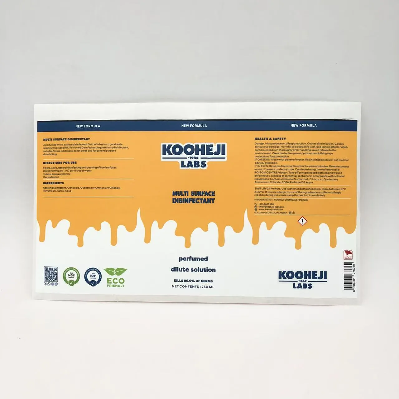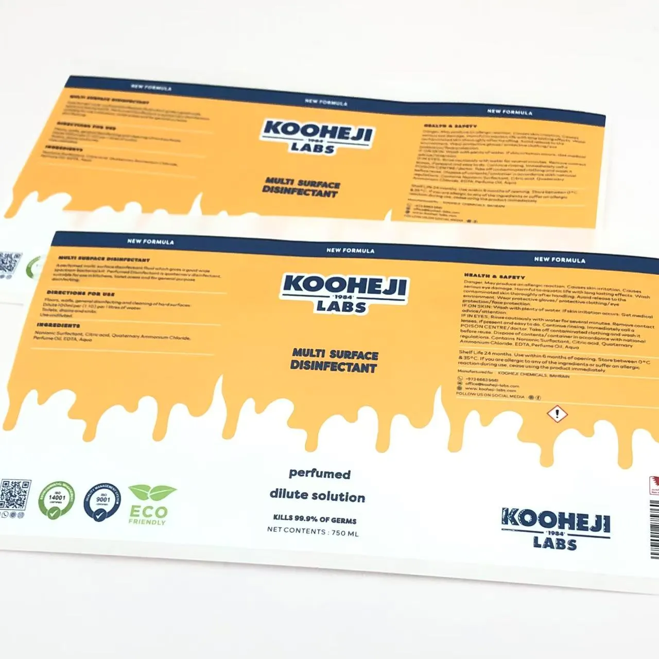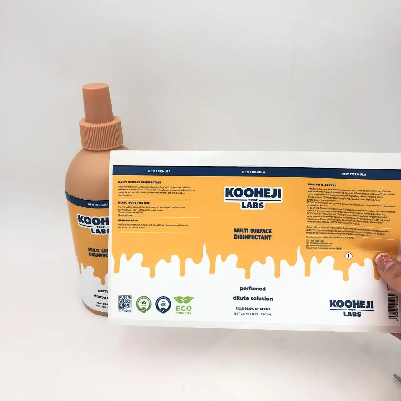 JOJO pakuotėgiliai užsiima dezinfekuojančių butelių pakuočių etikečių pritaikymu, esame susipažinę su medžiagų reikalavimais ir dezinfekcinių produktų saugos standartais medicinos, buities, prekybos ir pramonės srityse, užtikrindami, kad pritaikytos etiketės visiškai prisitaikytų prie atšiaurių naudojimo sąlygų.
