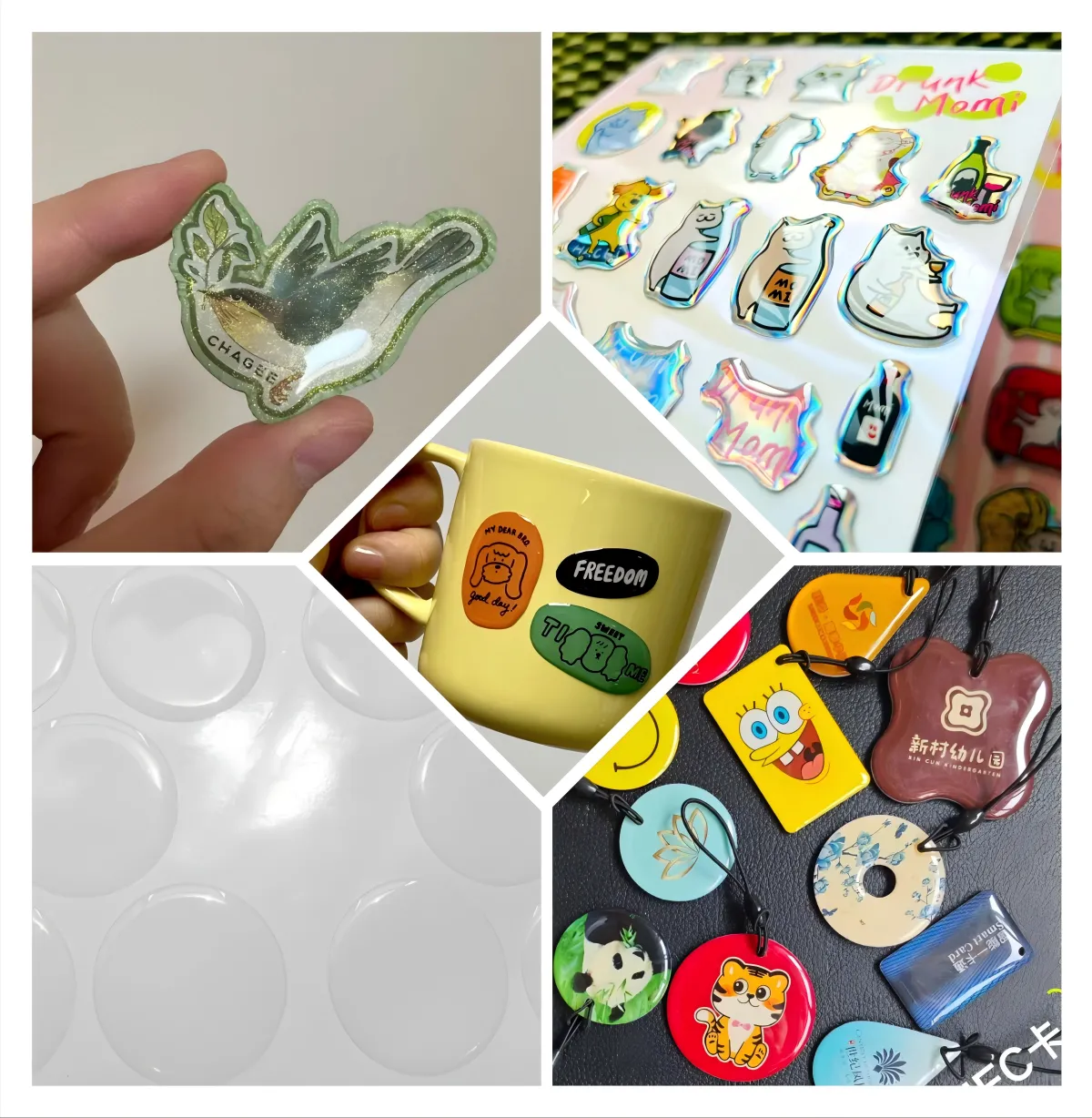 A3: Epoksidinės dervos lipdukai plačiai naudojami tokiose pramonės šakose kaip elektroninių gaminių logotipai, pramoninės įrangos įspėjamieji lipdukai, dekoratyviniai automobilių dalių lipdukai, asmeniniai lipdukai dovanoms ir medicinos prietaisų identifikavimo etiketės.