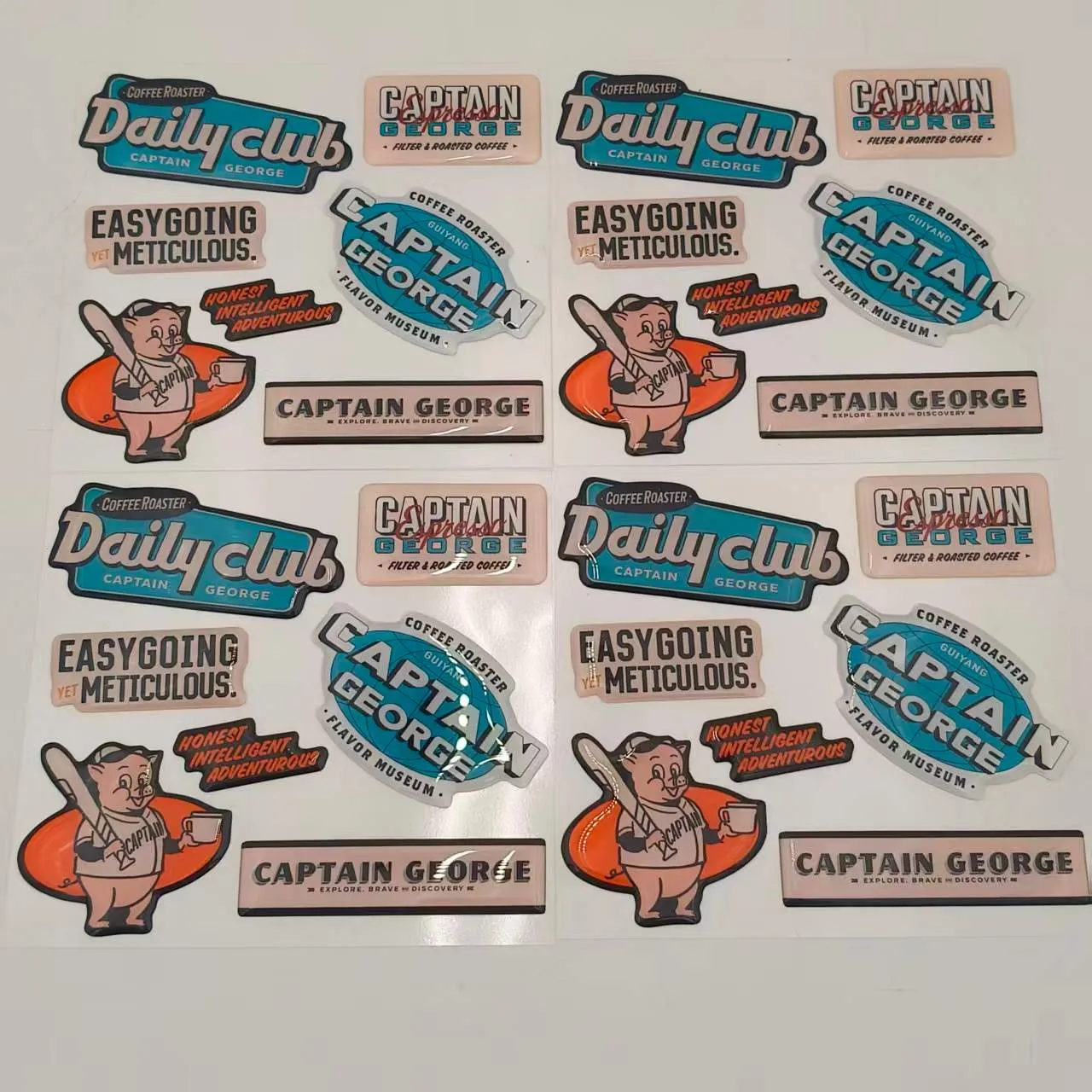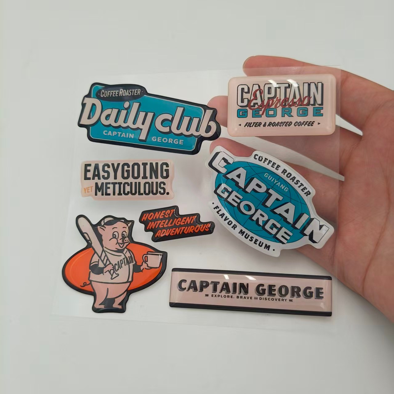 3D: Dėl skaidraus epoksidinės dervos sluoksnio, padengto ant spausdinto dizaino, šie lipdukai gali pasigirti iškilia trimačia išvaizda. Tai suteikia lytėjimo ir vizualinio gylio, kurio plokšti lipdukai tiesiog negali prilygti, todėl iš pirmo žvilgsnio jie tampa įspūdingesni.