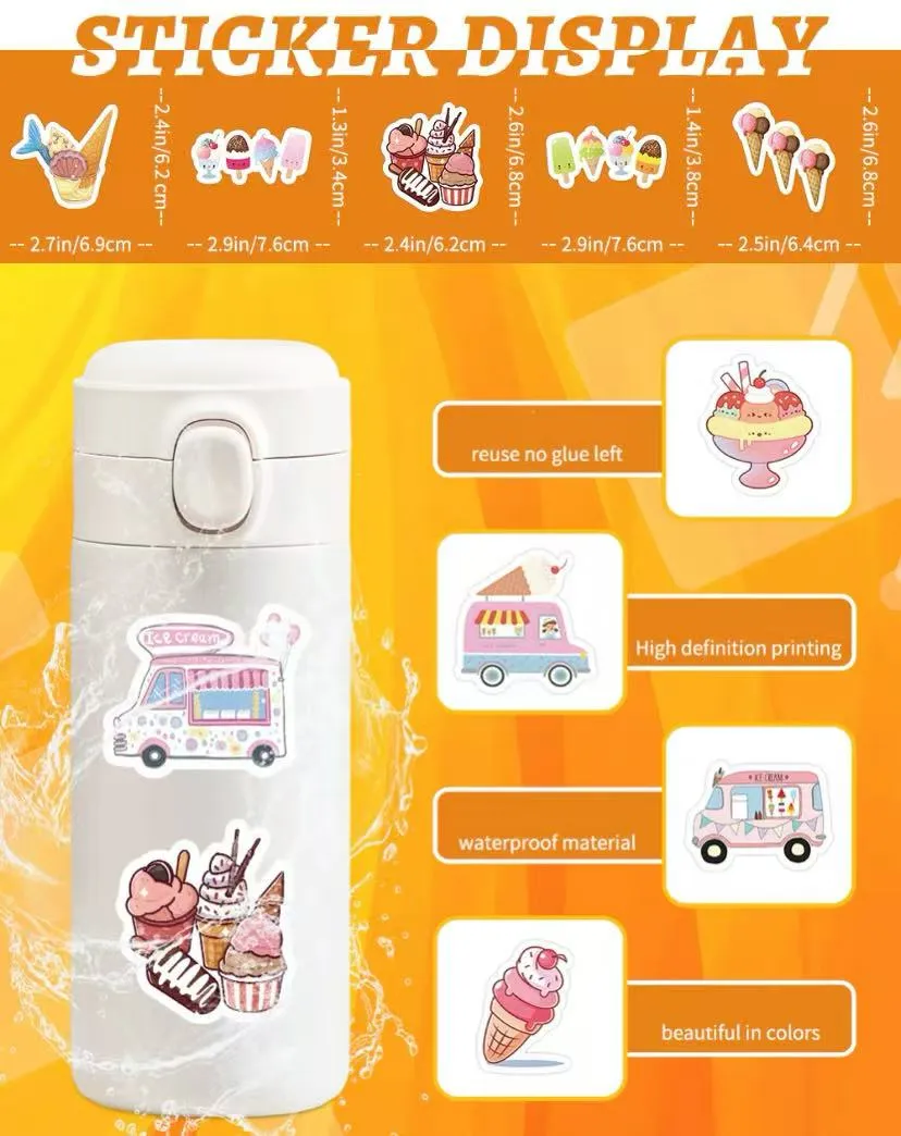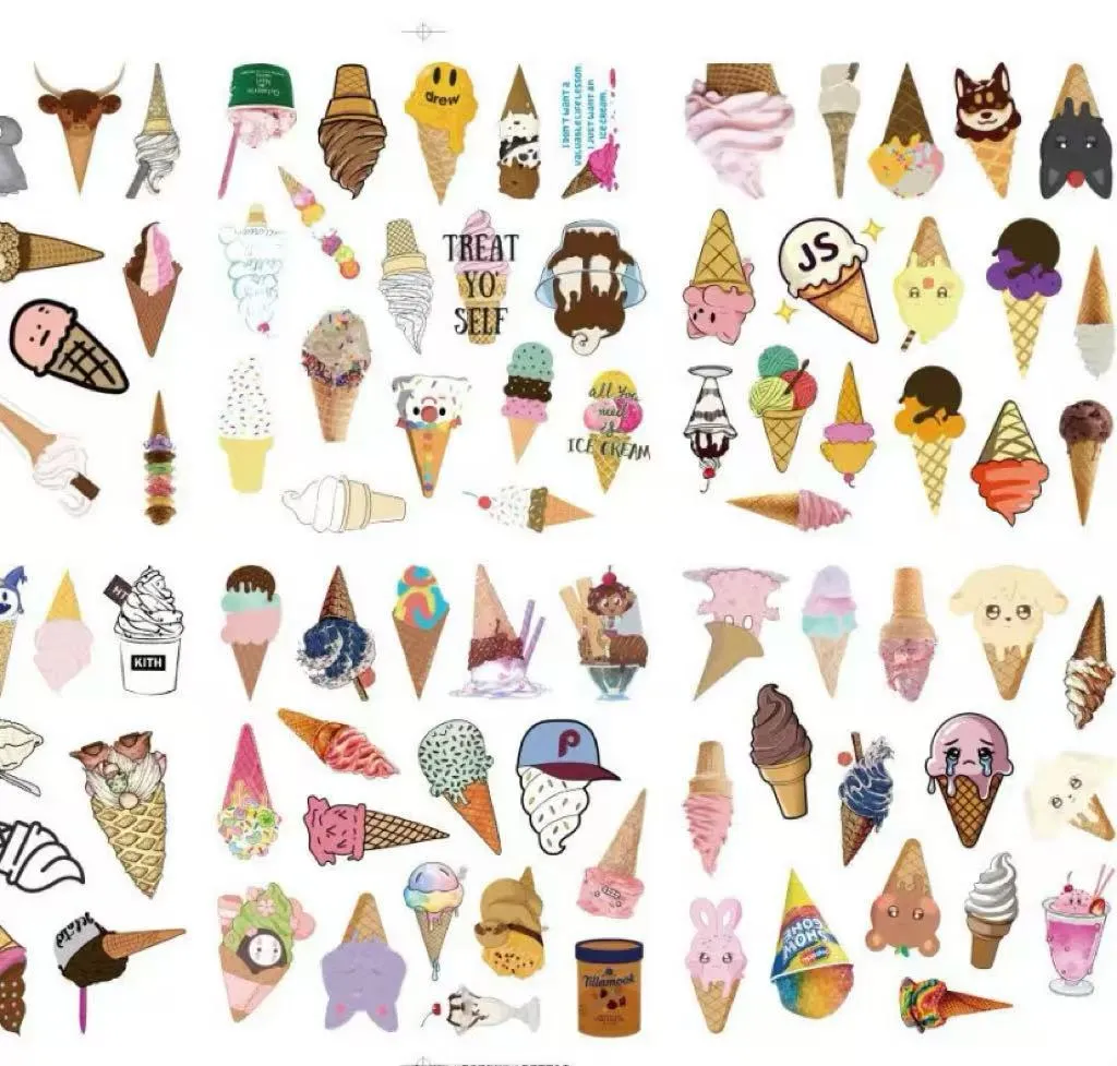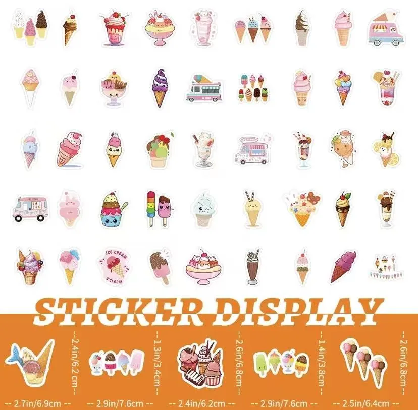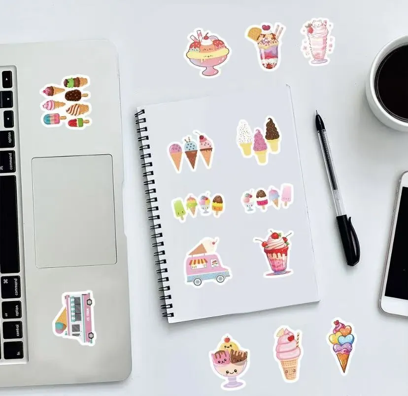 Šie ledų lipdukai, kuriuos pagamino „Jojo Pack“. Jis pasižymi skirtingais ledų elementais ir atrodo, kad kiekvienas lipdukas išskiria vėsų ir saldų aromatą, akimirksniu užpildydamas jūsų daiktus vasaros gyvybingumu.