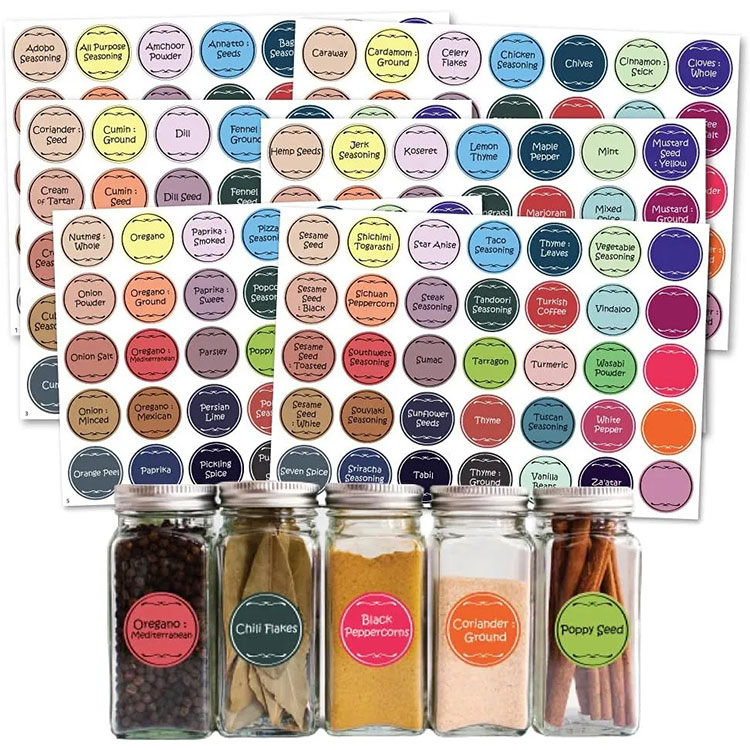 Virtuvinių prieskonių lipdukaiyra praktiška priemonė, skirta padėti maisto gaminimo entuziastams patogiau pasirinkti ir naudoti įvairius prieskonius.Virtuvinių prieskonių lipdukaipaprastai pateikiami įprastų prieskonių pavadinimai, naudojimas ir derinimo pasiūlymai. JOJO Pack taip pat gali pritaikyti juos pagal skirtingų klientų poreikius, pavyzdžiui, ryškių spalvų, mielų raštų ir kt.