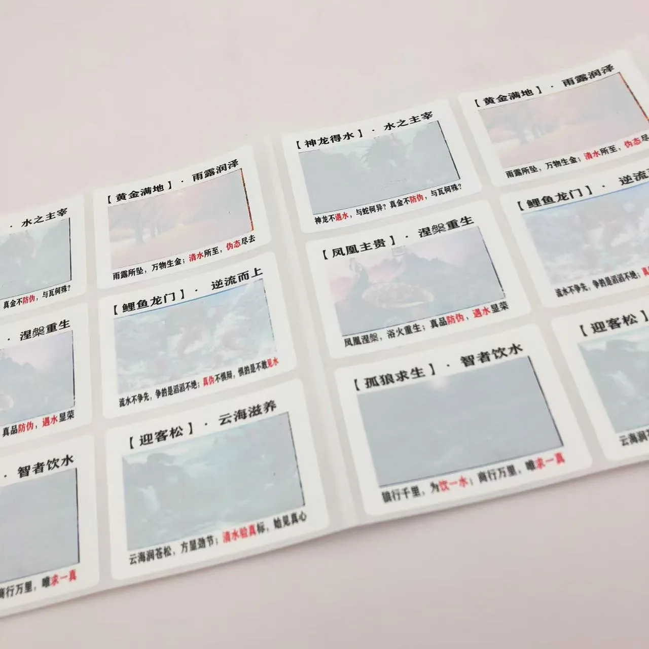 A vandeniui jautrios etiketėsišmani medžiaga, atspausdinta specialia vandens pagrindo rašalo struktūra. Patekę į vandenį ar kitus skaidrius skysčius, jie greitai sugeria drėgmę, todėl etiketė per maždaug 1 sekundę tampa beveik skaidri, o tai atskleidžia paslėptus raštus ar tekstą. Išgaravus skysčiui, kai kurių tipų kortelės gali grįžti į pradinę būseną ir pakartotinai naudoti.