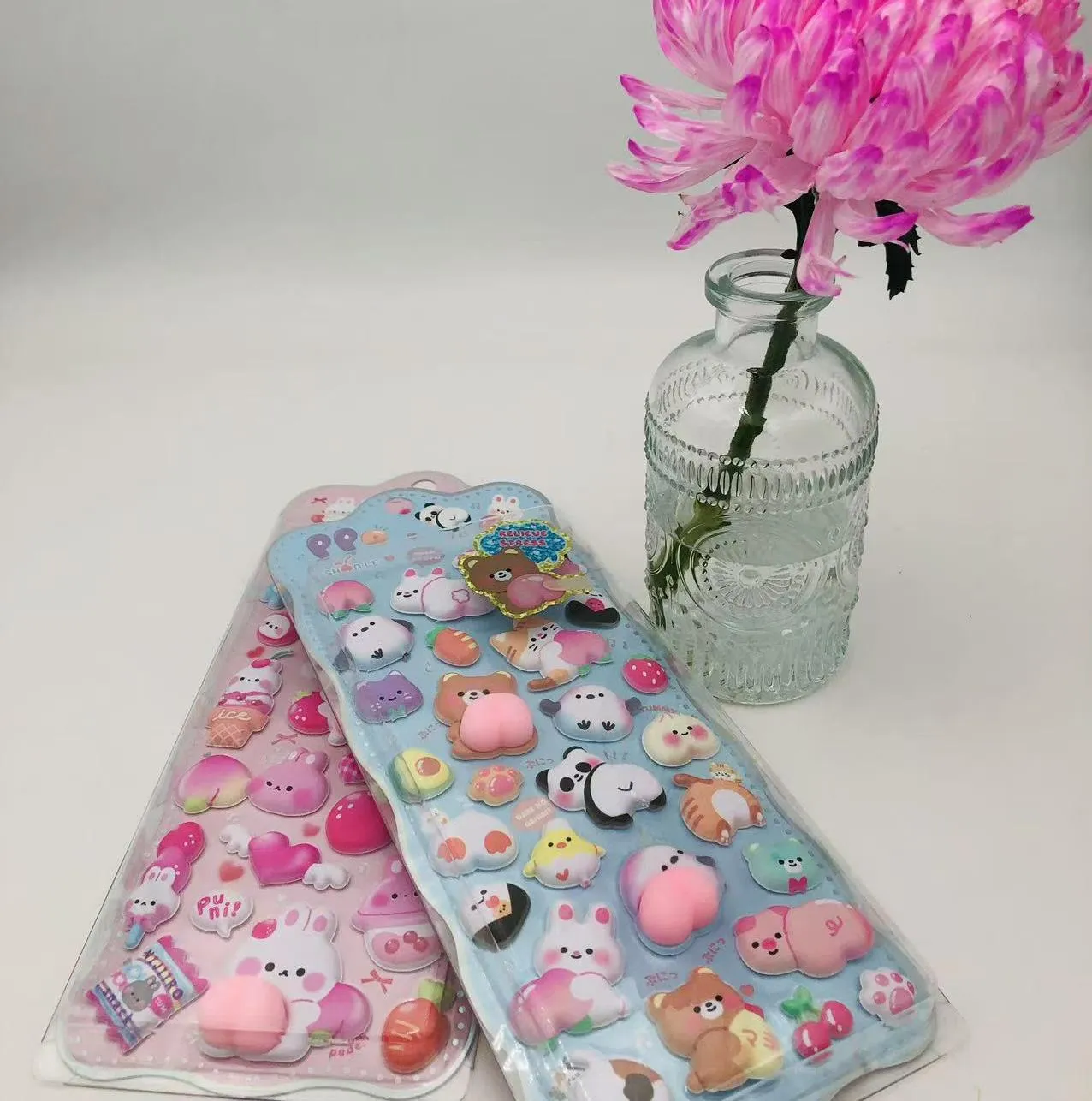 Lėto atšokimo medžiaga: šie lipdukai paprastai gaminami iš lėtai atšokančių putų, silikono arba lipnios gelio. Kai juos suspaudžiate, bakstelite ar spaudžiate pirštais, jie lėtai įdubia ir palaipsniui atšoka. Šis procesas neįtikėtinai mažina stresą, viliojantis nuolat spausti ir minkyti.