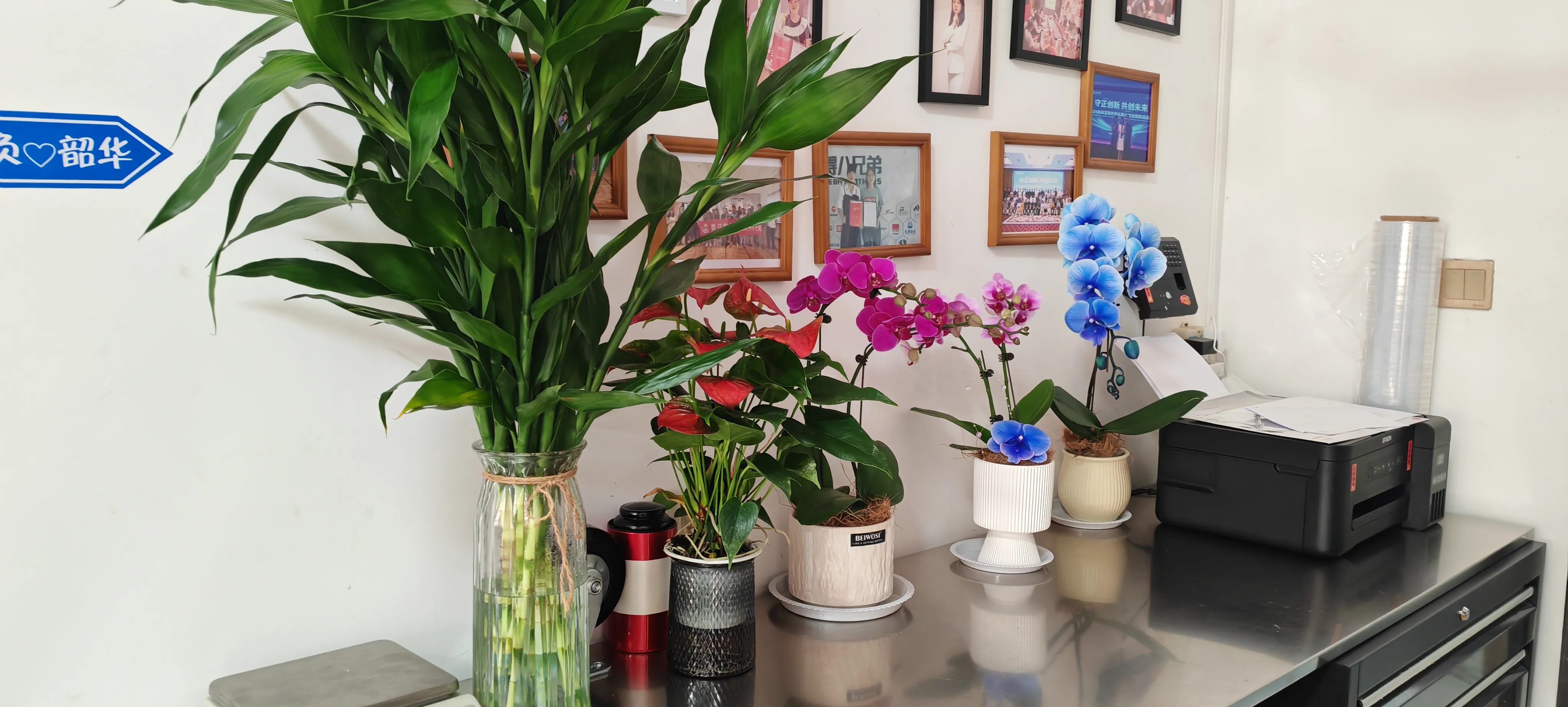 Užsienio prekybos vadovas M. Men šypsodamasis sakė: "Anksčiau biuro aplinka buvo švari, tačiau joje trūko gamtos pojūčio. Dabar, pasipuošus šiomis gėlėmis ir žaliuojančiais augalais, visa erdvė pagyvėjo. Per darbo pertraukas žiūrint į žaliuojančius augalus, akys irgi atsipalaiduoja." Boso rūpestis priverčia visus pajusti kompanijos šilumą. Esame labiau motyvuoti dirbti. Per pietų pertraukas gėlėmis ir augalais galime pasirūpinti ir su kolegomis, o tai suteikia daug linksmybių.