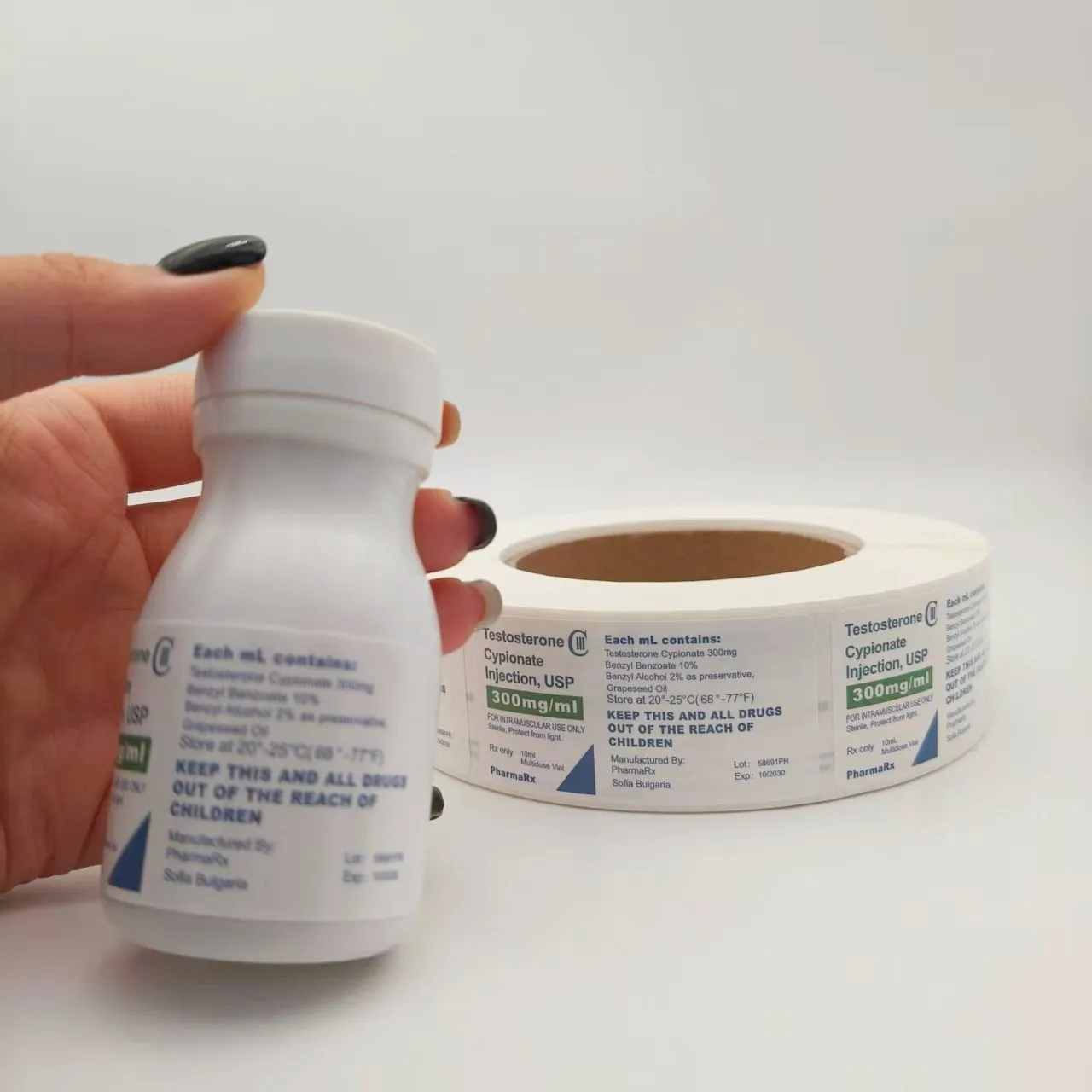 Buteliuko specifikacijos: suderinkite vaisto buteliuko skersmenį, aukštį ir formą (apvalus, kvadratinis ir kt.), kad būtų užtikrinta, jog etiketė būtų visiškai prilipusi neviršijant buteliuko arba neuždengiant buteliuko burnos ir dugno.
