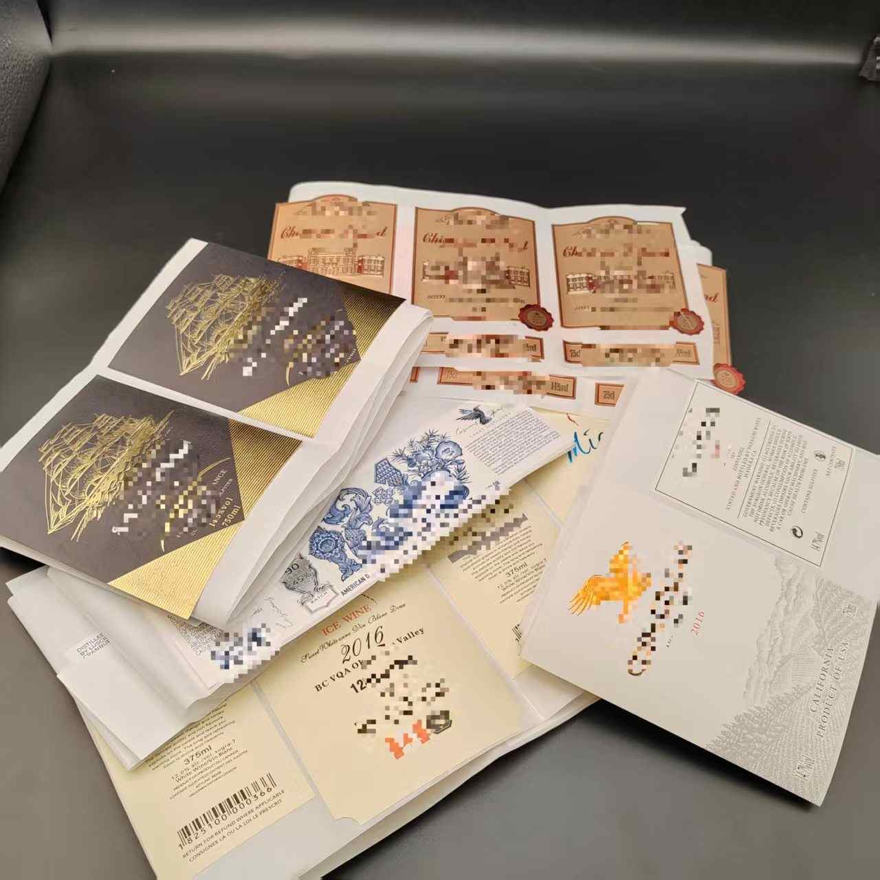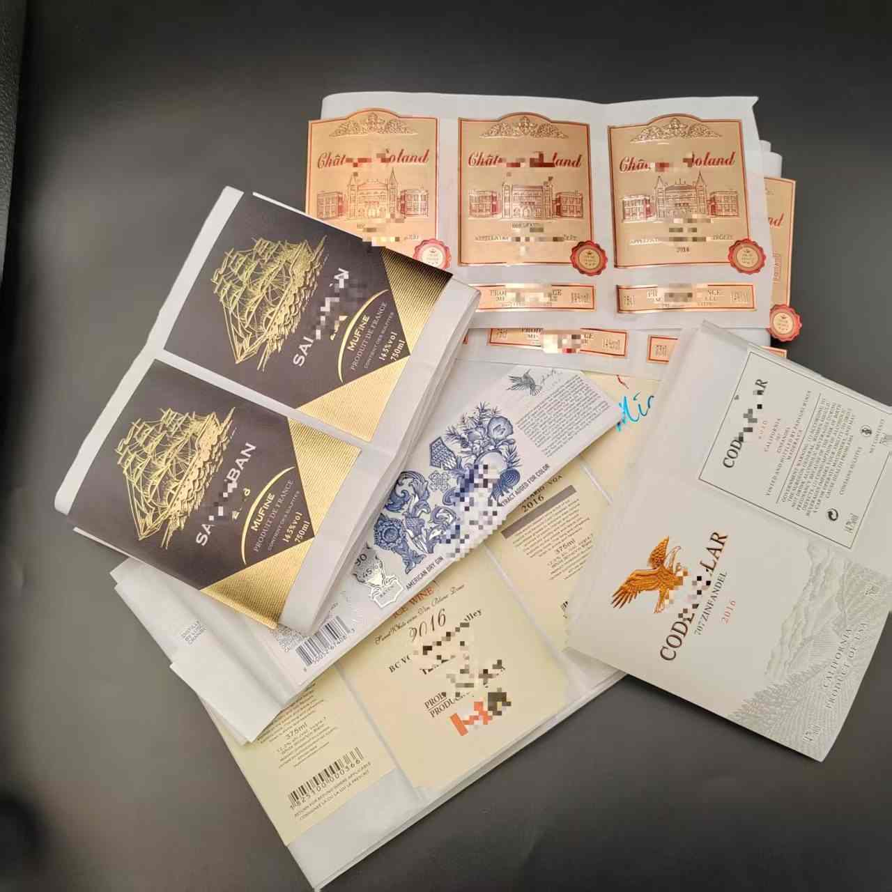 A: Taip, galite visiškai pritaikyti vyno etikečių dizainą, kad atspindėtų jų prekės ženklo stilių. Tai apima tokius elementus kaip prekės ženklo logotipai, spalvos, raštai, metalinės folijos, matinės tekstūros ir pan.